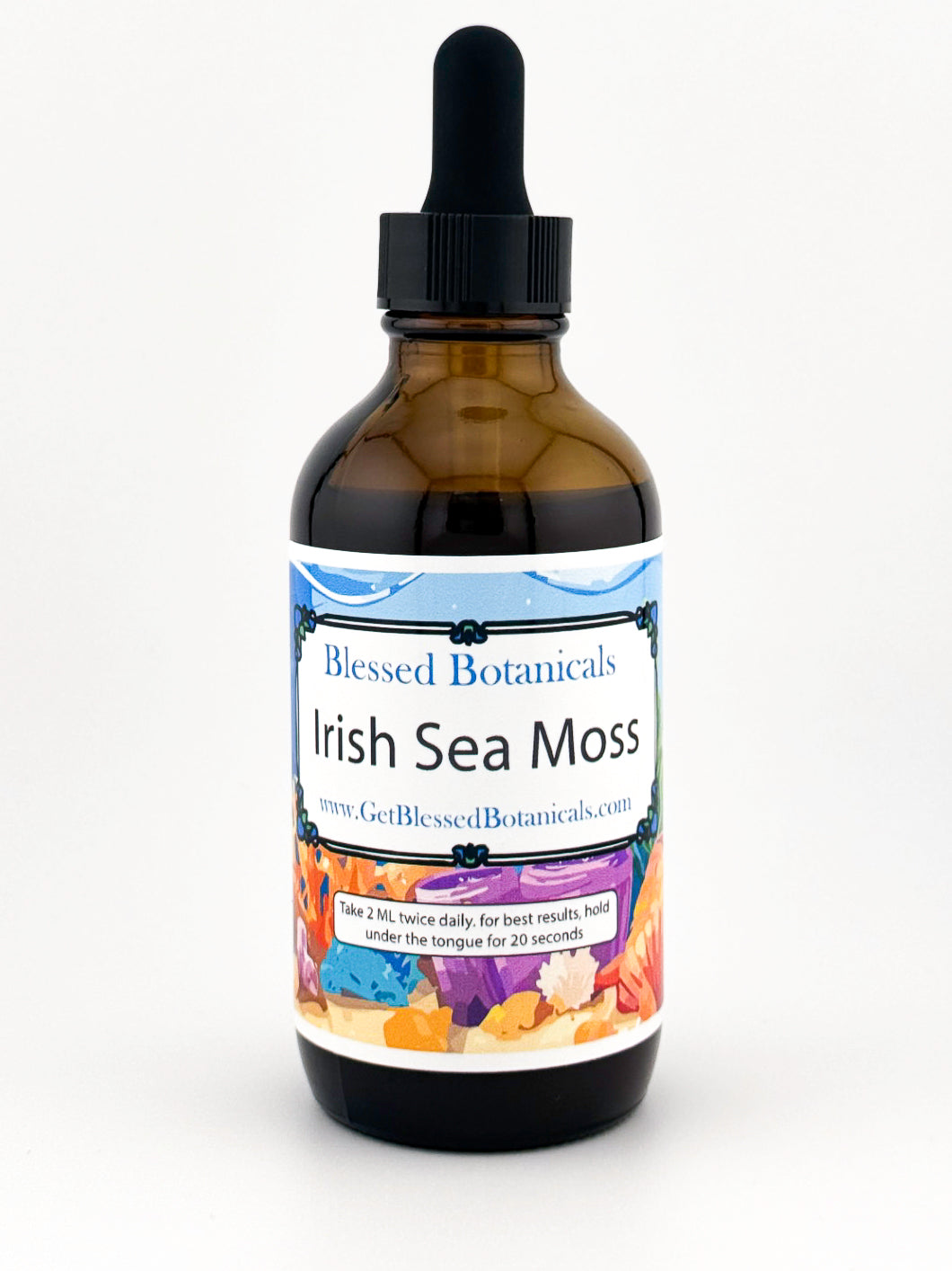 Our Irish Sea Moss tincture is a blend of high quality herbs that contain 92 out of 102 minerals that your body needs. Studies have shown that Irish Sea Moss promotes digestive regularity, promotes thyroid function, boosts immune function, improves circulation, improves metabolism, promotes healthy sexual function, may increase the growth rate in young children, regulates central and peripheral nervous system, regulates menstrual cycles, and controls cholesterol.