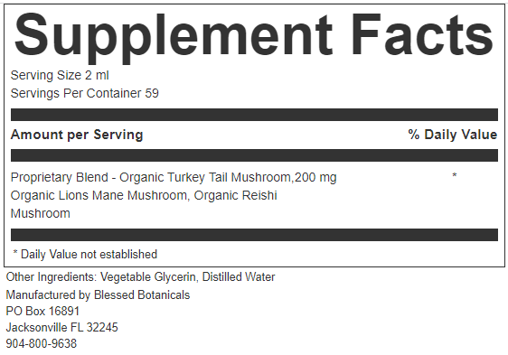 Support your daily wellness with this powerful trio of functional mushrooms—Turkey Tail, Reishi, and Lion’s Mane—all organically grown and carefully extracted in a gentle, alcohol-free formula. Rooted in traditional herbal wisdom and crafted for modern lifestyles, this blend is a nourishing addition to any daily routine.